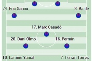 前锋:亚马尔、莱万、费兰·托雷斯