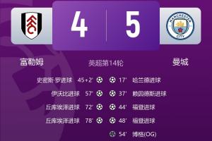 体育资讯12月03日讯 英超第14轮,曼城5-4击败富勒姆,曼城一战丢4球,防守堪忧。
