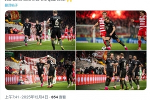 凯恩社媒晒出比赛照片,庆祝球队晋级,配文:“任务完成,晋级8强!”