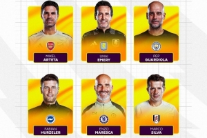 体育资讯12月4日讯 英超官方公布11月最佳主帅候选,阿尔特塔、瓜迪奥拉、马雷斯卡等6名教练入围。