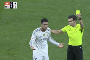 体育资讯12月08日讯 皇马本轮0-2不敌塞尔塔,皇马本场场上球员两人被罚下。第60分钟时,贝林厄姆遭伊格莱西亚斯肘击,贝林头部出血,这下对方没有吃牌。