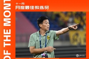 体育资讯12月8日讯 中甲联赛官方公布了11月最佳教练人选,广州豹主帅冯峰当选。