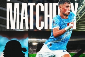 曼城官方社媒发布了赛前海报,内容为福登带球突进,哈兰德的剪影出镜。