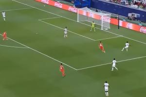 苏丹中场阿马尔·泰弗在己方底线附近过人,随后诡异地“吊射”自家大门,门将勉强将球一扑,球落到对手脚下,然而巴林前锋阿里·马丹面对半个空门却将球打偏婉拒大礼,场上一时不分敌我!