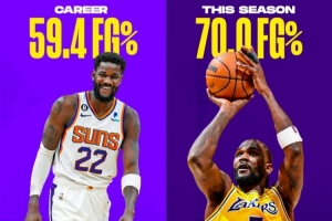 他有望成为队史首位单赛季场均得分超过15分且命中率超过70%的球员,展现出在内线的绝对统治力、高效性和掌控力。