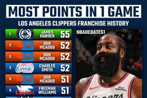 快船队史单场得分榜前十详细排名:
