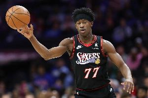 体育资讯12月15日讯 NBA常规赛,76人半场55-59落后老鹰。