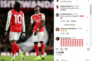 体育资讯11月24日讯 英超第12轮的北伦敦德比,阿森纳以4-1的比分大胜热刺。赛后,枪手边锋萨卡在社交媒体上庆祝了这场胜利。