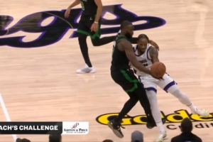 GIF-布朗逼抢德罗赞被吹犯规 绿军挑战失败