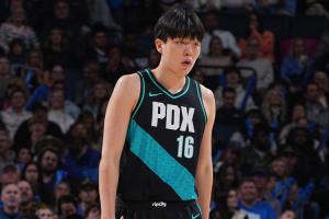 GIF-杨瀚森大帽!还盖到哈珀头上出界!开拓者球权!