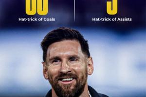 据统计,38岁的梅西目前进球戴帽的场次有60场,助攻戴帽的场次有9场。