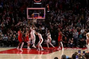 但裁判看过回放之后确认这球超时了,进球无效!开拓者取胜!