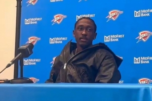 体育资讯1月12日讯 NBA常规赛,雷霆124-112轻取热火,赛后,杰伦·威廉姆斯接受采访。