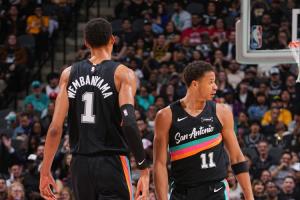 马刺14号秀卡特·布莱恩特赛后接受了采访,当被问到认为自己可以成长为什么级别的球员时,他说:“我认为我可以成为世界第二好的防守球员,因为一个身高7尺5寸、移动速度像怪物一样的球员(文班)在前面,我很难成为世界第一的防守球员。”