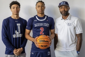 体育资讯11月28日讯 SLAM University报道,詹姆斯前队友莫·威廉姆斯目前是NCAA杰克逊州立大学男篮主教练,而他的儿子梅森·威廉姆斯(图中)刚刚承诺加盟,明年高中毕业后,他将加盟杰克逊州立大学,为父亲效力。